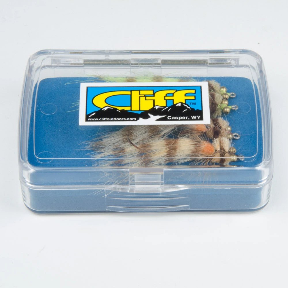 - A single sided box with slotted “blue” material for secure fly storage. This is a great option for a handful of trout bugs, panfish poppers, terrestrials, or small streamers.
