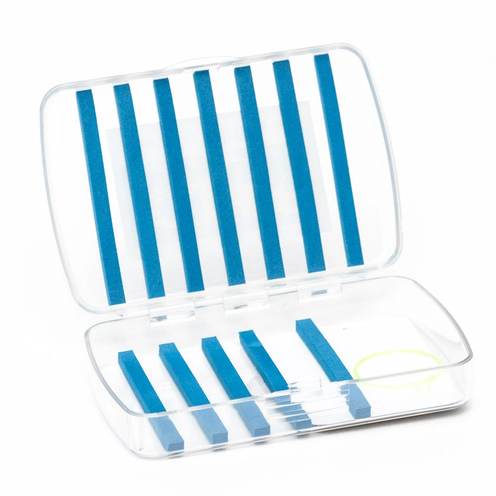 Designed to carry a bit of everything you might need for an outing to your local trout or panfish water, the Big Cliff is the perfect dry/dropper box. Use the blue material strips to store your dries, terrestrials, streamers, or large nymphs, and the magnetic pad for the small dropper nymphs and emergers. This box provides a great way to carry a variety of flies in just one shirt pocket. It also includes a mono security leash to attach the box to a loop on your vest, chestpack, or lanyard system.