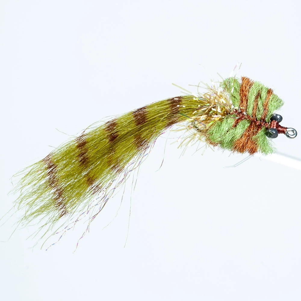 A good shrimp/crab immitation tied with extra flash in colors that appeal to redfish. The fly has lead eyes to get it down to the fish and make it ride hook point up, and a weed guard.