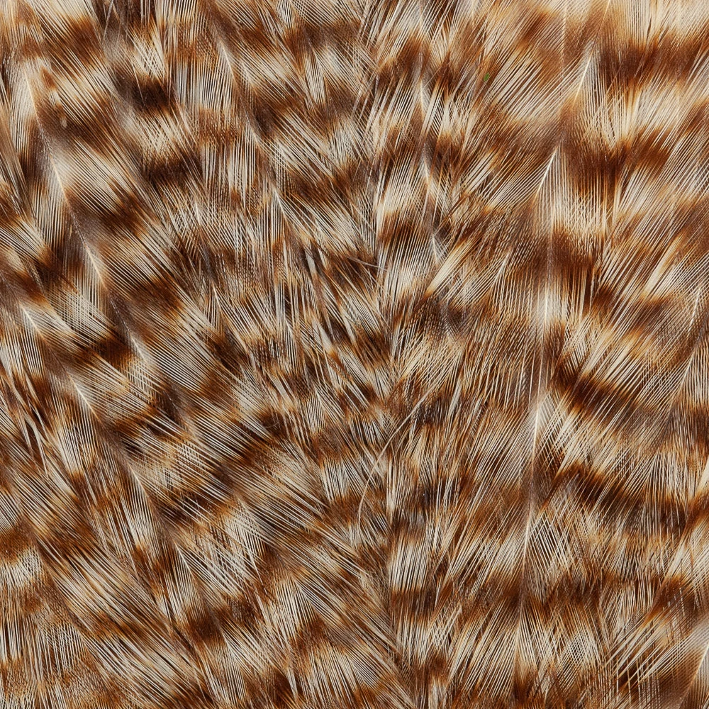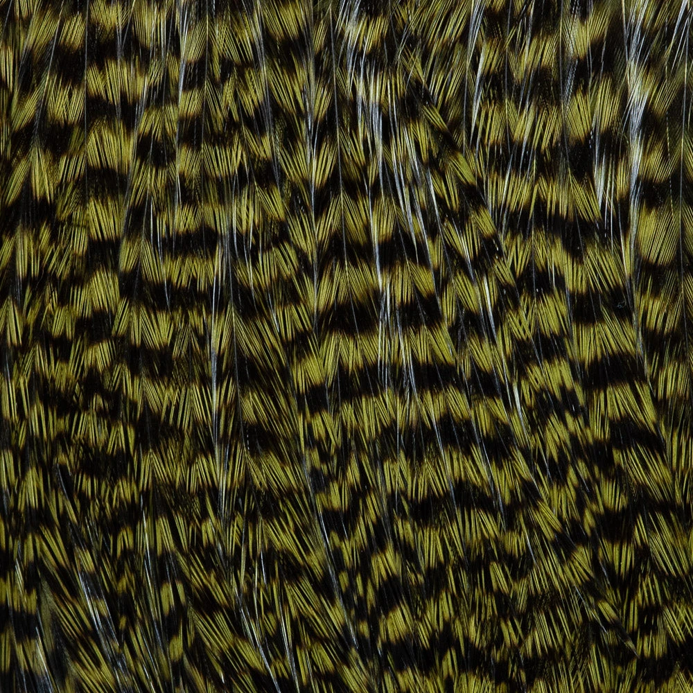 These patches are cut from the lower section of a neck and are, as you might have assumed, great for dying deceivers and other streamers. They also work very well for splayed hackle patterns and popper tails.