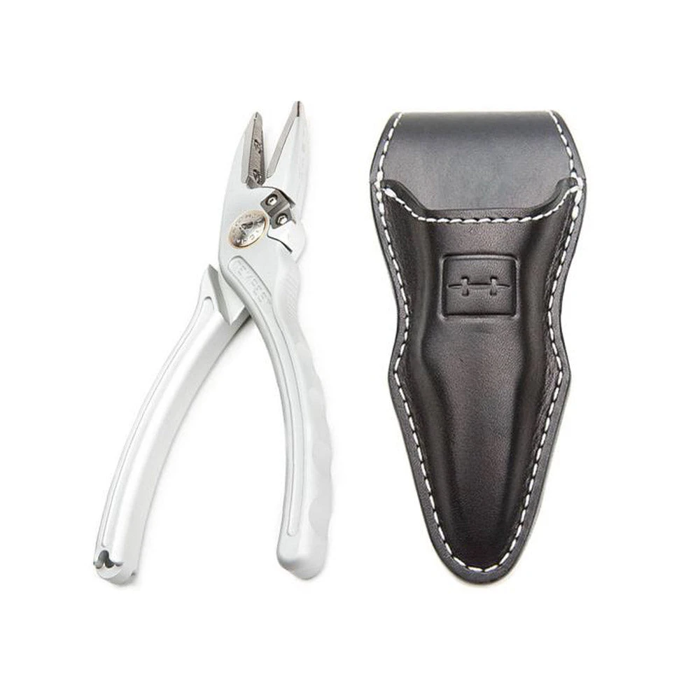 Tempest pliers come with a custom Hatch bungee lanyard and a black leather sheath.