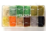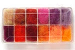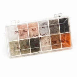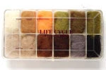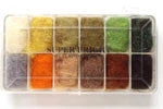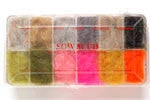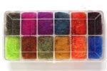 12 colors of dubbing in a well organized dispensing box. If want something easy or just aren’t sure what colors to choose, get a dispenser. Can be easily refilled.