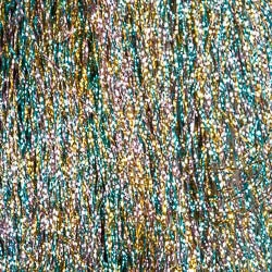 Flashabou Accent, one of the most widely used flash materials, is made of spiraled mylar strands that refract light in all directions and create the illusion of movement. Available in solid colors, dyed over pearl, and grizzly (Grizzly Accent) which is a 2 color mylar.