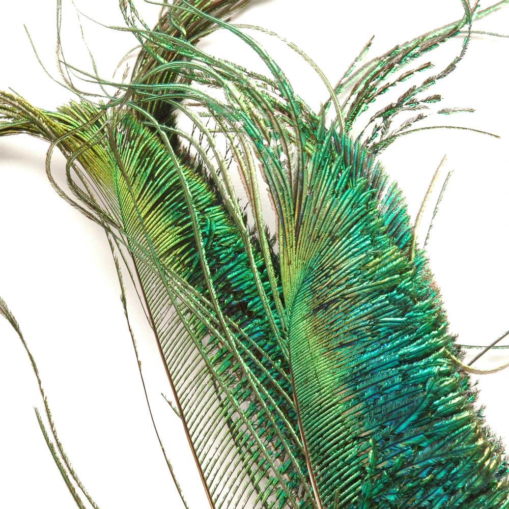 Peacock swords are an essential component of several flies including the popular Zug Bug. These iridescent peacock feathers look great in the water and attract fish just as well as they attract anglers.
