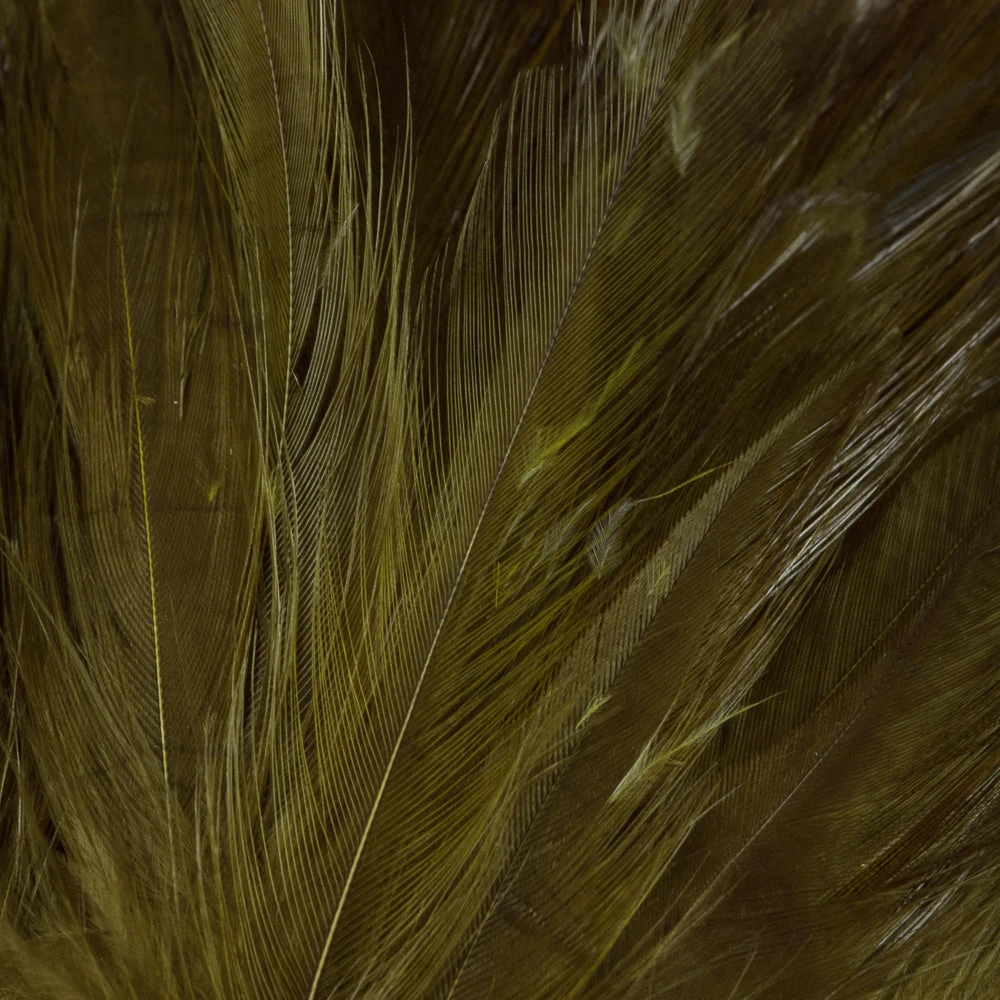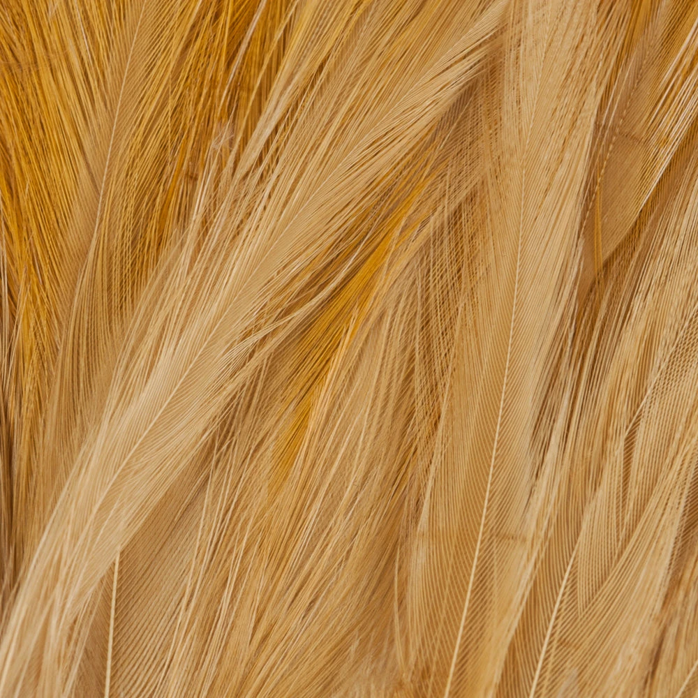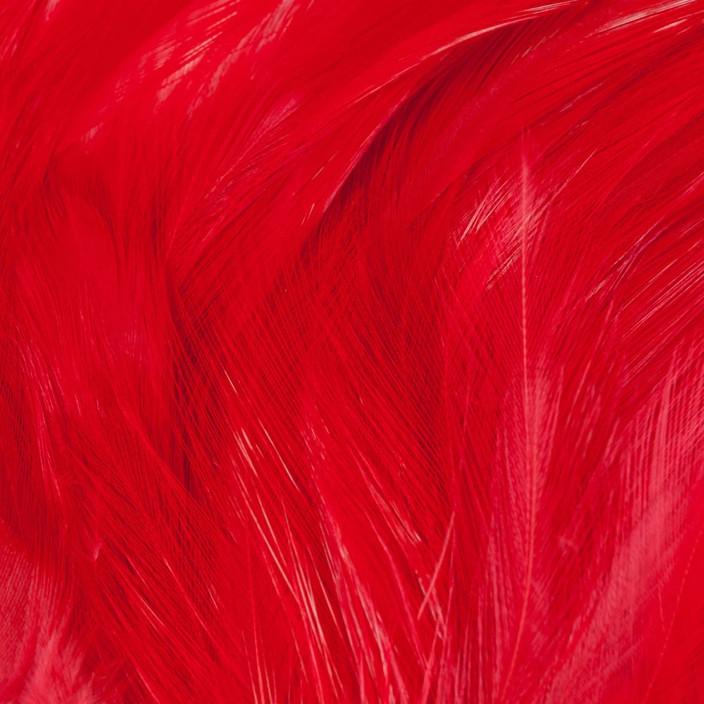 These large, wide hackles are great for a number of salt and freshwater patterns requiring larger feathers. They are packaged strung, average between 3 and 5 inches long and have a relatively stiff stem.