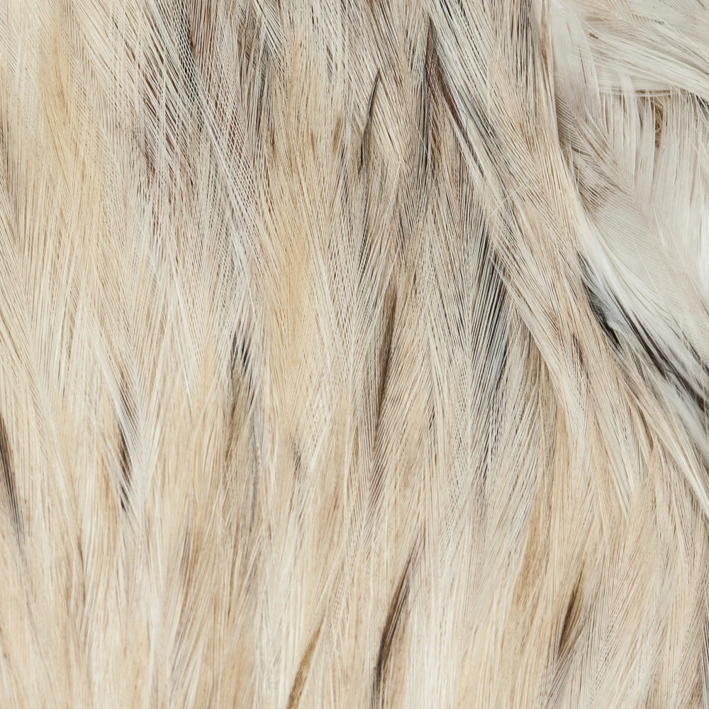 A great value for a dry fly neck. These necks come from small Indian birds which were one of the original sources of dry fly hackle. The feathers are dry with stiff barbs. Sizes range from 10-20 with many in the range of 14-16.