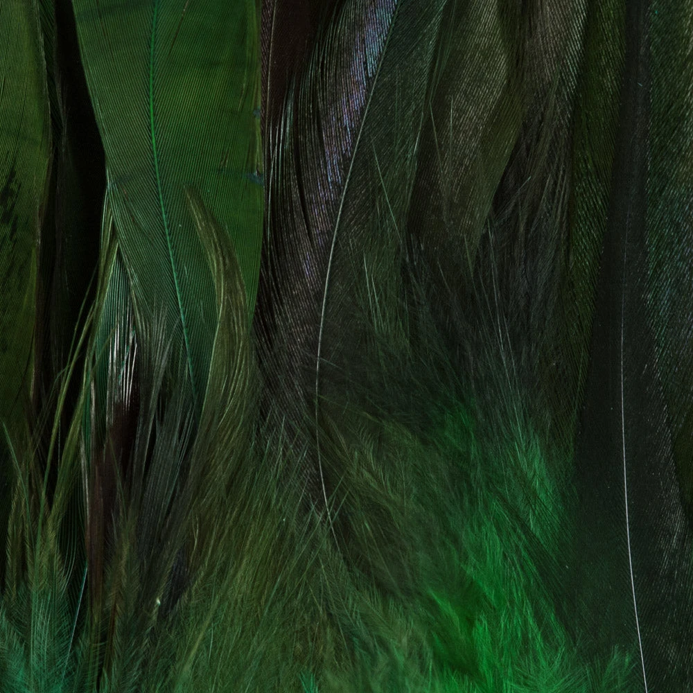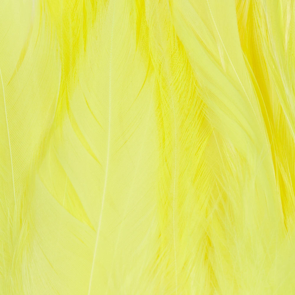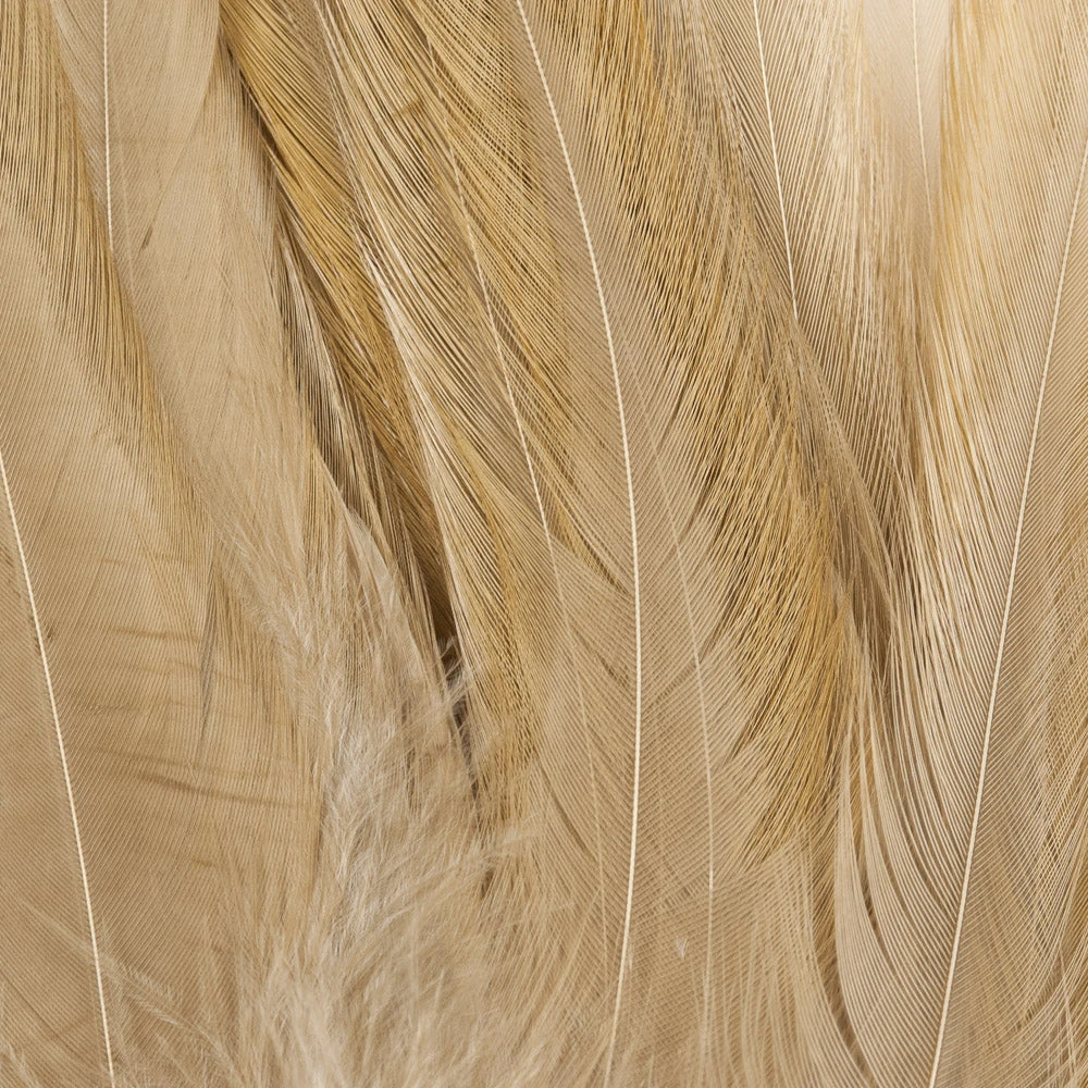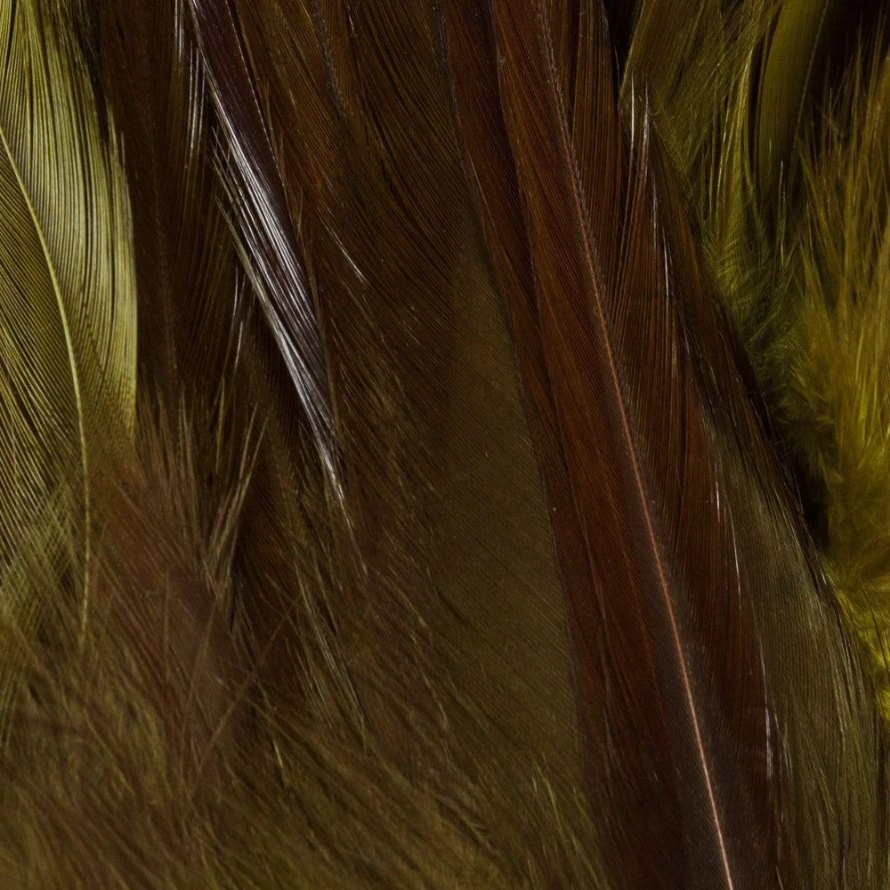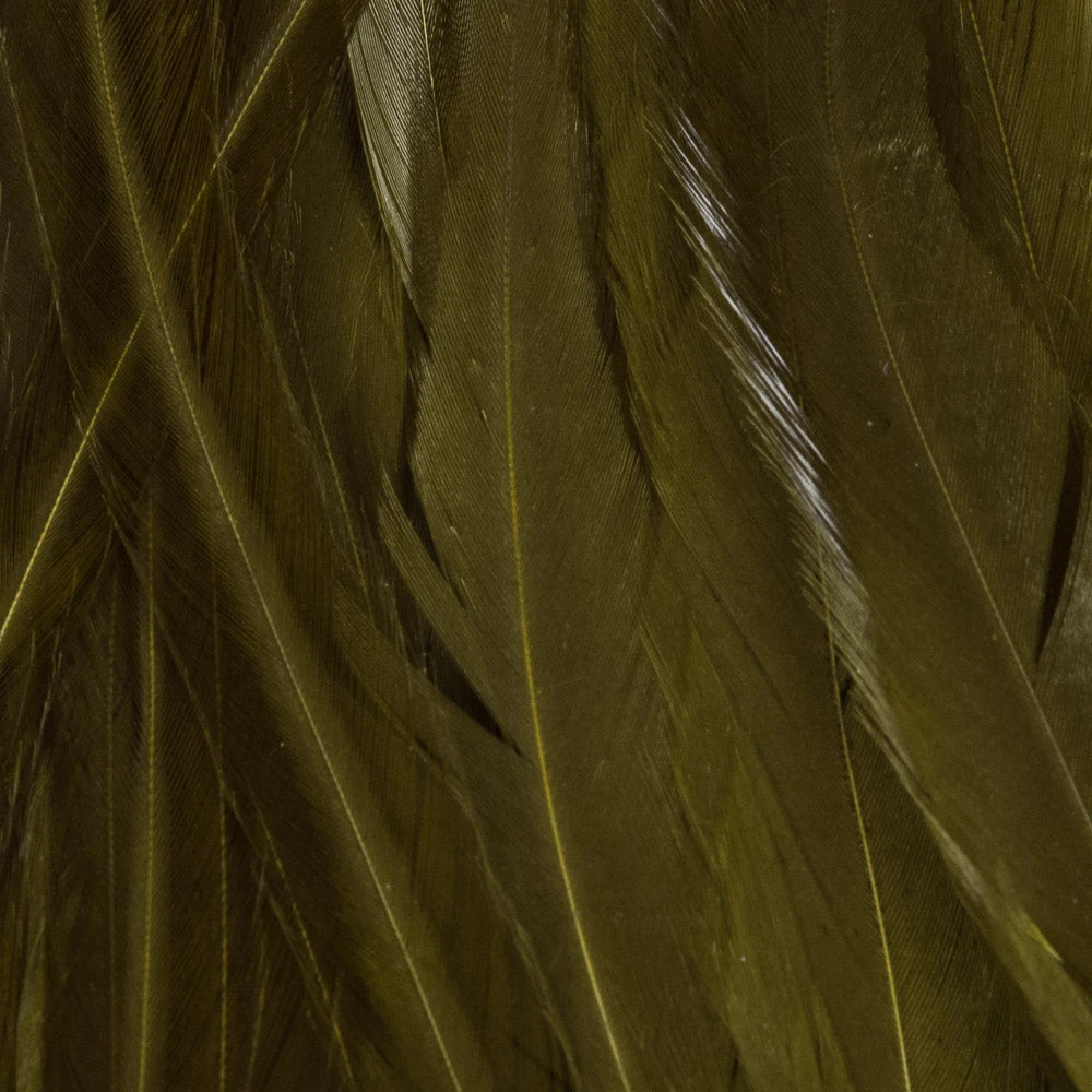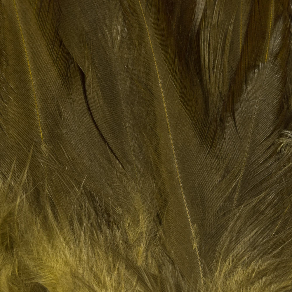 Saddle feathers are relatively thin and long with a flexible stem. They work great as flexible tails on larger streamer flies and are also ideal for palmering. Average length is between 5 1/2″ and 6″ although lengths do vary.