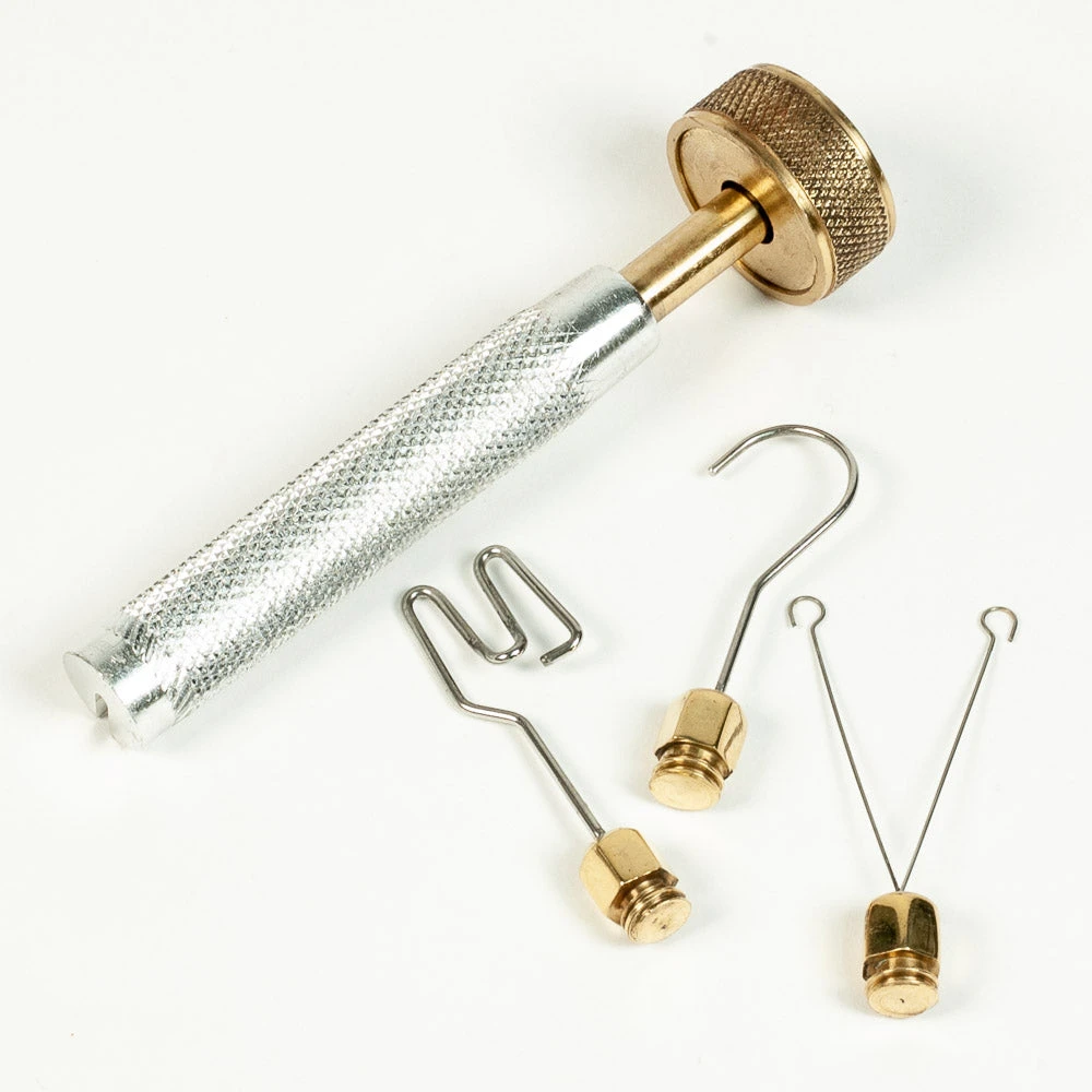 The Terra Dubbing Spinner is a convenient two tools in one, designed to be a multi-head dubbing spinner and a hair packer when the need arises. Three interchangeable heads of various sizes are included to meet your spinning needs, while the knurled handle is slotted to allow easy hair packing without changing tools.